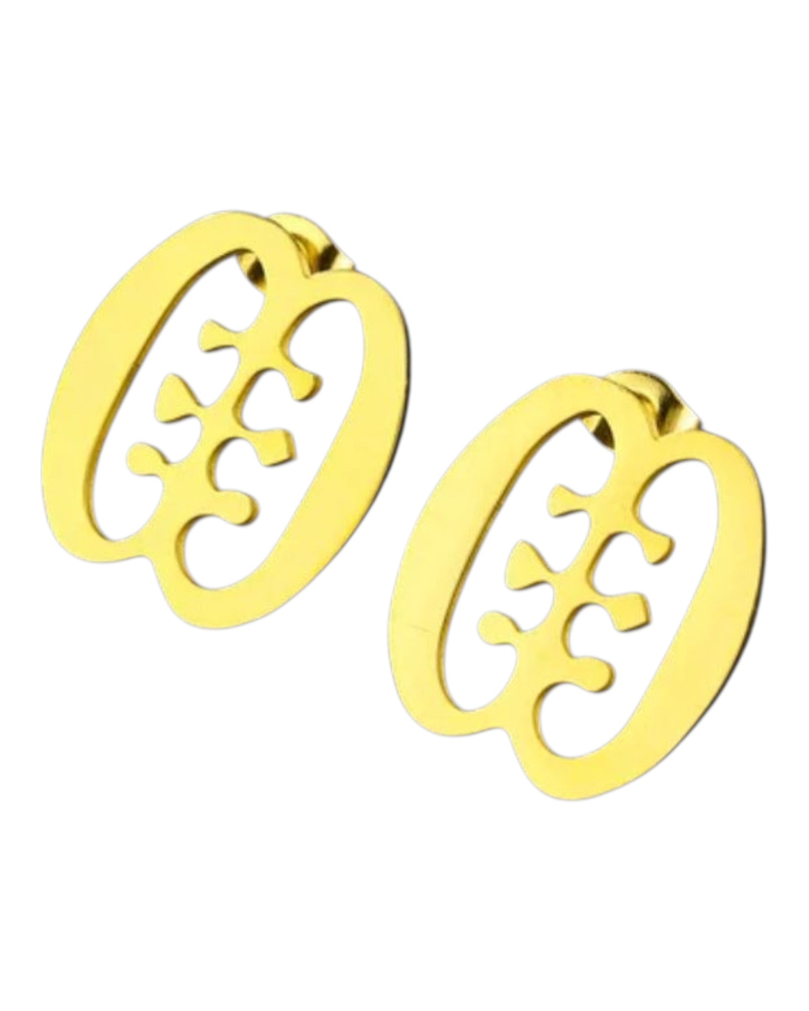 The Adinkra Symbol Post Earring Collection is crafted in a radiant gold-tone finish and inspired by traditional Adinkra symbols of the Akan people of Ghana. These earrings are lightweight, versatile, and designed to connect you to heritage while making a bold fashion statement.